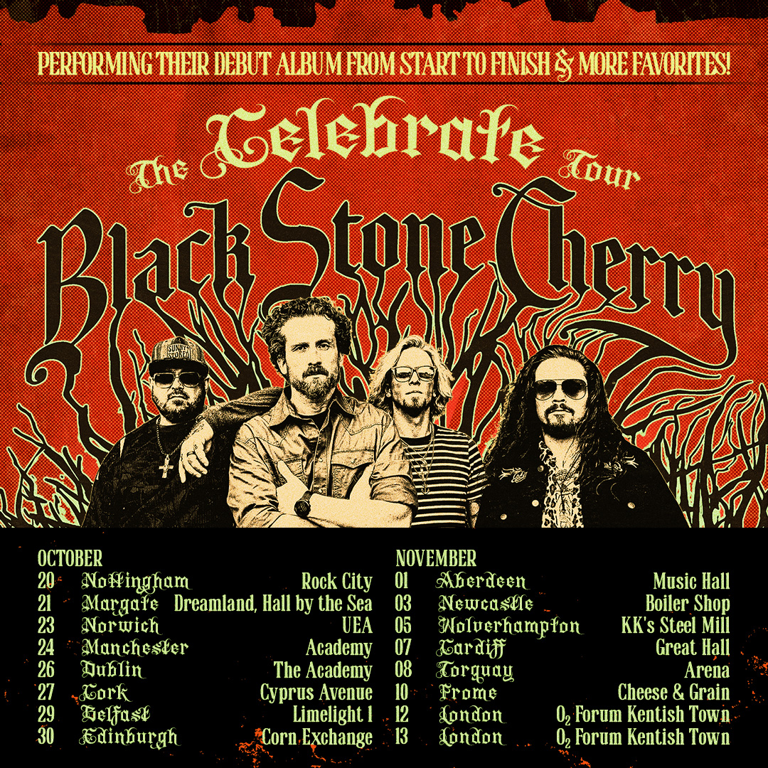 Unsurprisingly then, BLACK STONE CHERRY are already on the road, doing what they do best, and are currently winding their way around the US. Along with songs from their high-voltage back catalogue, the band have been airing tracks from their as-yet-unreleased latest EP, “Celebrate”, which will be released on March 6th, 2026 and can be pre-ordered now.