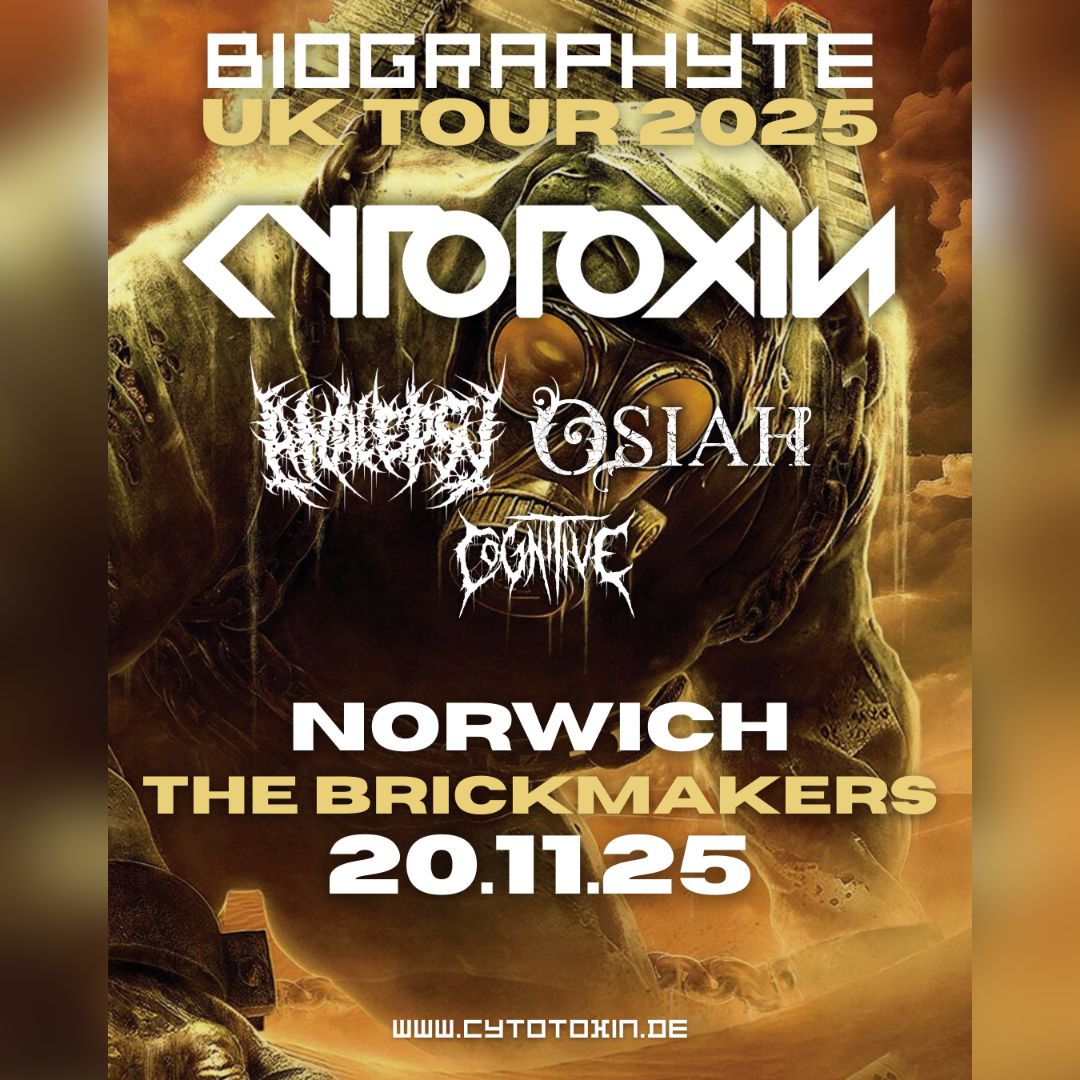 Does it get heavier than this?! Chernobyl Death Metal comes to the UK as Nuclear CYTOTOXIN bring their album launch tour to Great Britain this November. Support from an absolutely incredible bill of bands with slamming brutes ANALEPSY, the UK’s own Deathcore kings OSIAH and New Jersey’s immutable COGNITIVE ![]()