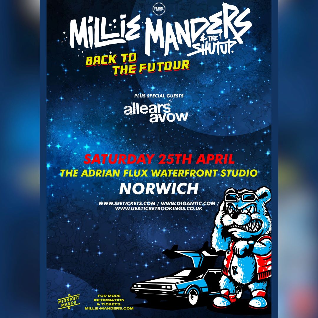 Cross-genre punk rock is increasingly hard to ignore. With main stage appearances at notable festivals such as Slam Dunk, Beautiful Days and Rebellion, and extensive support from the likes of BBC Introducing and Radio X, the last two years have propelled MILLIE MANDERS AND THE SHUTUP into the public conscience and music industry at large.