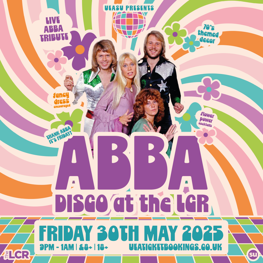 Calling all Dancing Queens, get ready for the ultimate ABBA celebration landing in The LCR on Friday 30th May. Prepare to dance the night away to all your favourite ABBA hits, plus plenty more dance floor bangers from the 70s through to today.