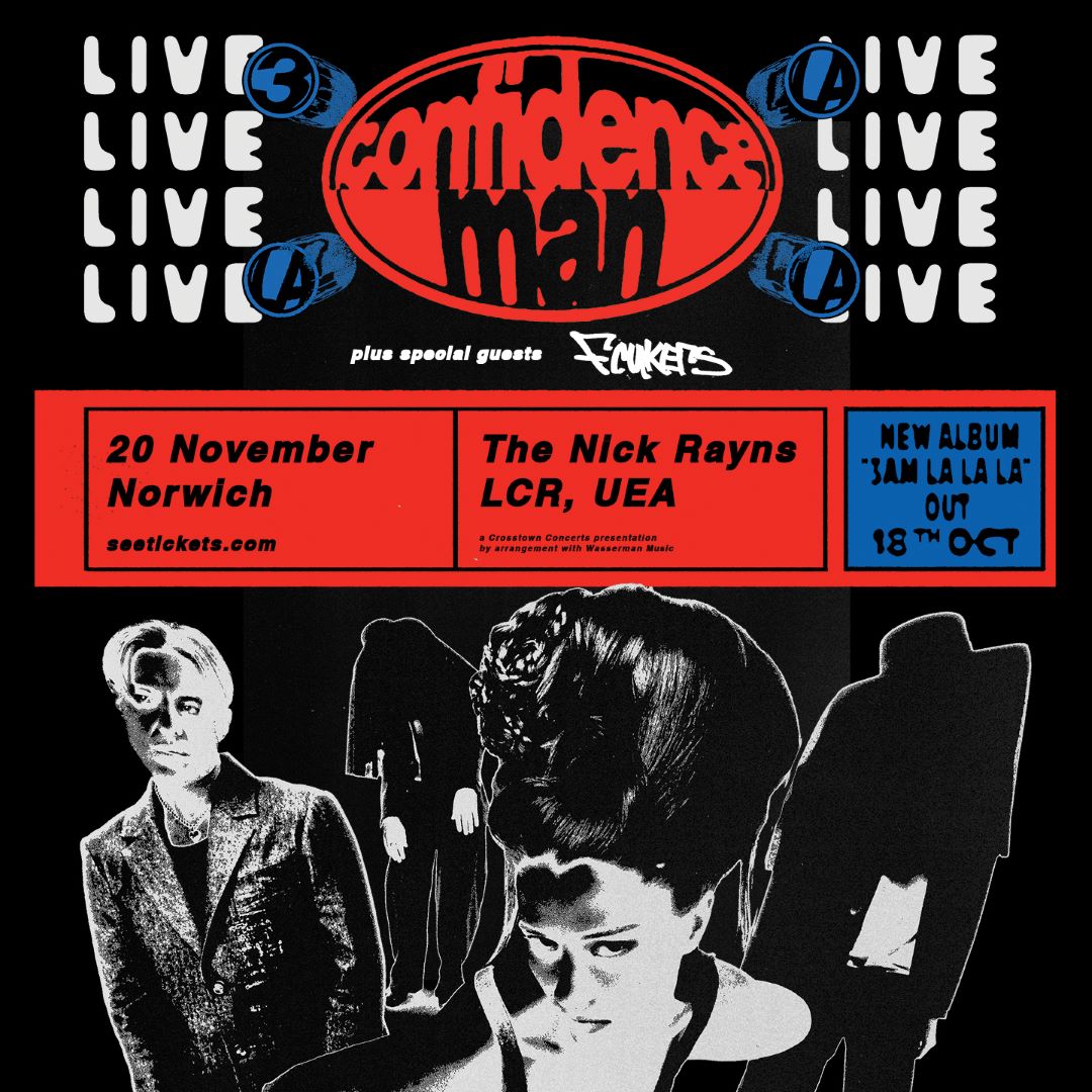 Keen detectives may also notice the album’s reference to the song ‘3am Eternal’ by their heroes, the British acid house group The KLF (the very same KLF who once pulled off one of the most talked-about stunts in UK music history: burning a million quid). That admiration works both ways: The KLF’s elusive Jimmy Cauty has become a Confidence Man fan and has worked on a remix of the album’s closing title track. “I don’t think he’d been to a gig in 25 years and he came to see us at the Roundhouse in London,” says Planet. “He’s been mentoring us a bit ever since.”
