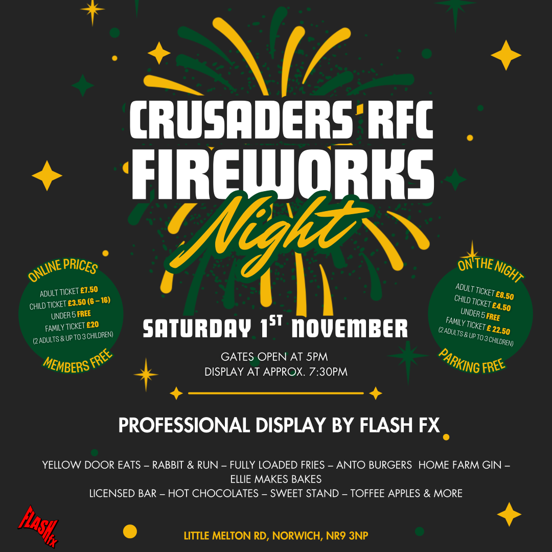 Get ready for a spectacular night of colour, food, and fun as Crusaders Rugby Club hosts one of the most thrilling Bonfire Night celebrations in Norfolk!
