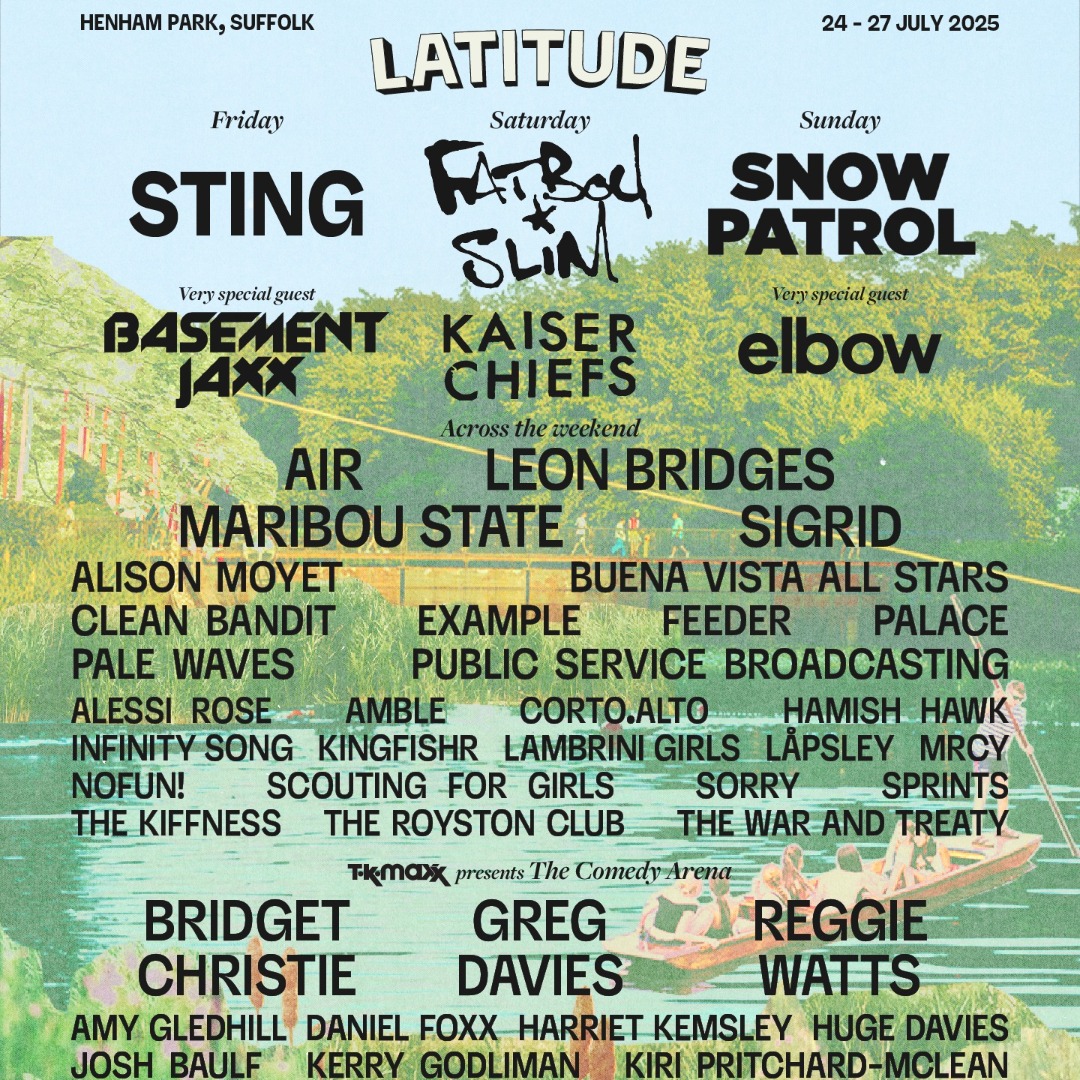 We are thrilled to announce that Fatboy Slim and Snow Patrol join Sting to complete your headliner line up for Latitude 2025!