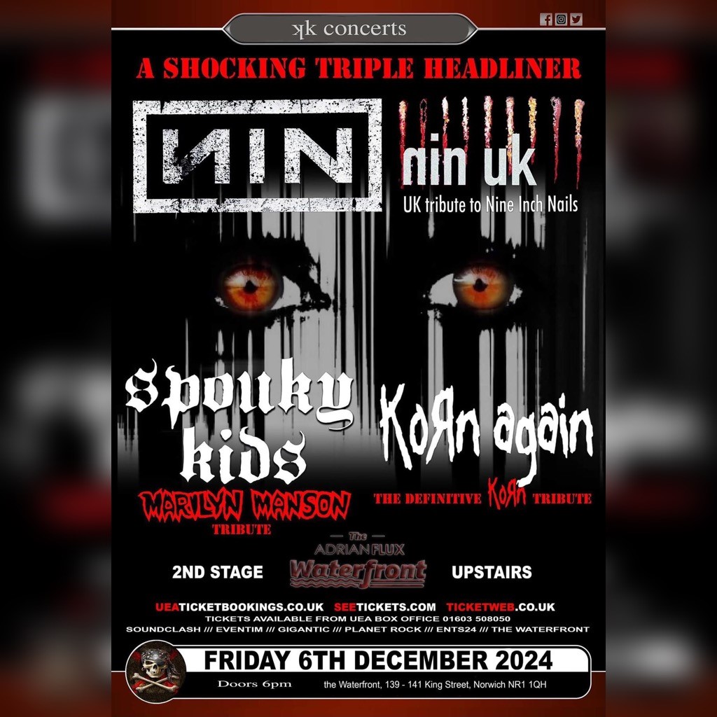 Get ready for an epic night of mind-blowing music! the Waterfront Norwich, UK is hosting an unforgettable tribute triple header featuring the iconic sounds of Korn, Marilyn Manson, and Nine Inch Nails. Brace yourself for an electrifying experience as these talented tribute bands transport you back to the golden era of alternative rock.